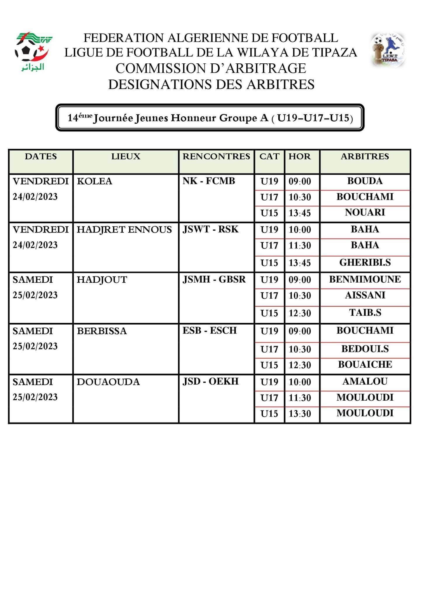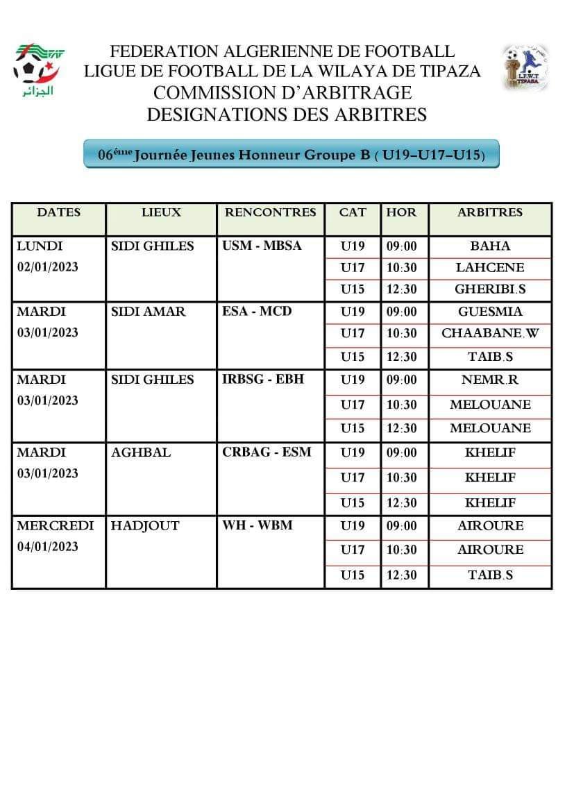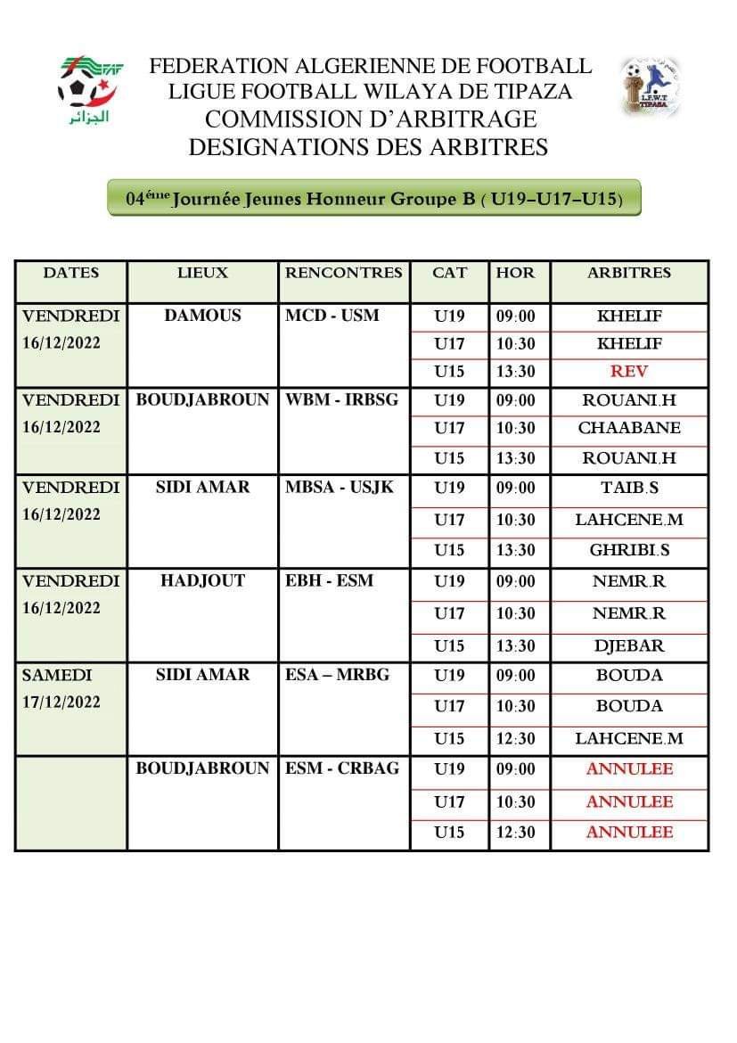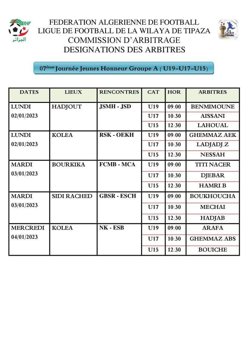 désignation des arbitres du 27.12.20222 Honneur + Jeunes
