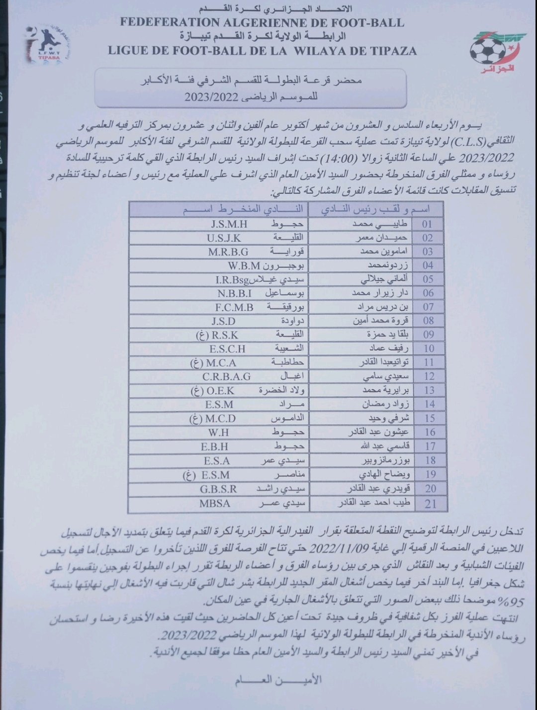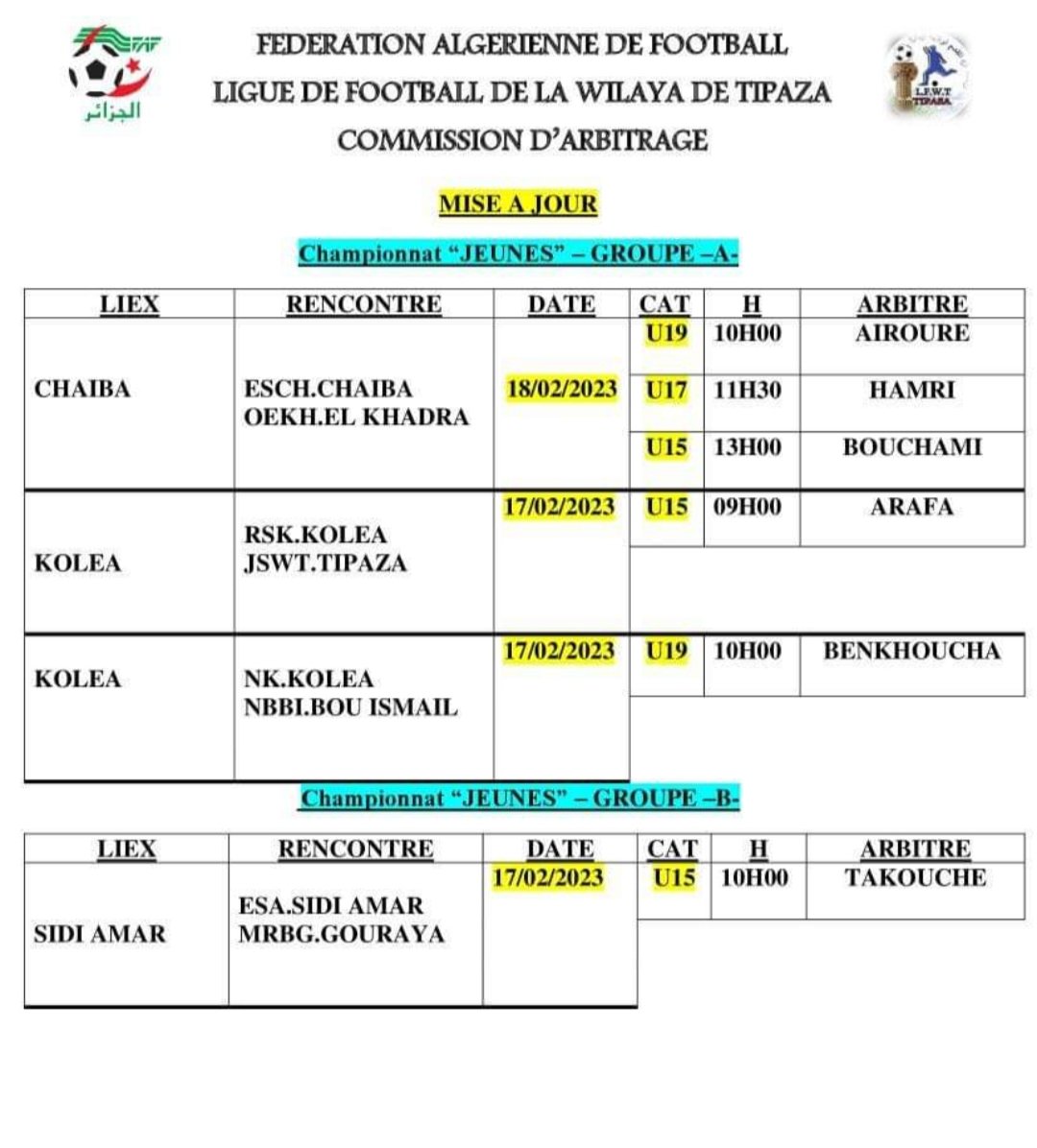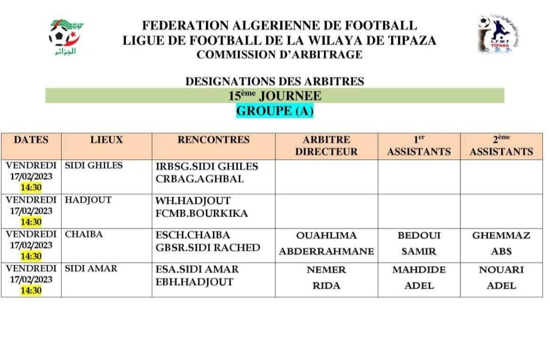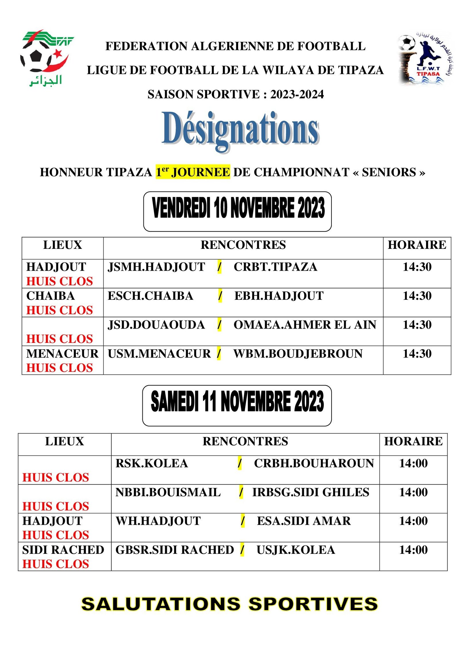 désignation des arbitres du 27.12.20222 Honneur + Jeunes