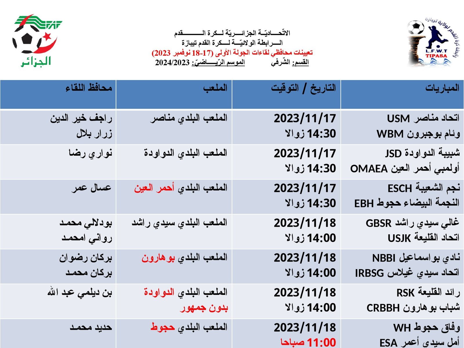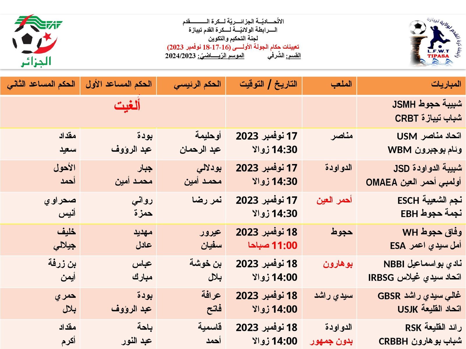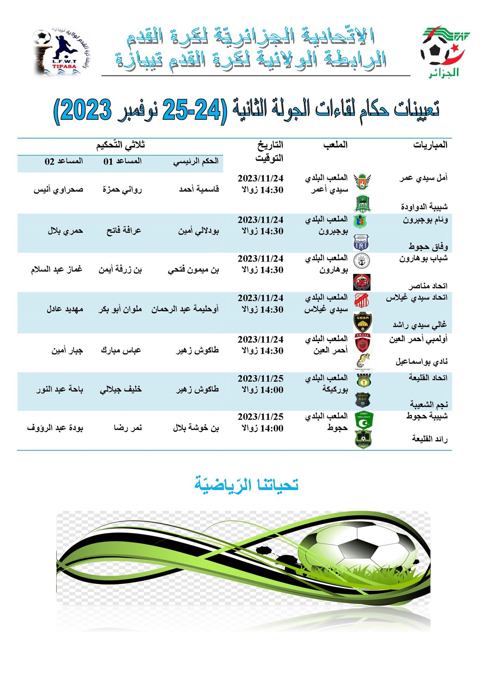 تعيينات حكام الجولة 5 أكابر / الجولة 2 فئات شبانية