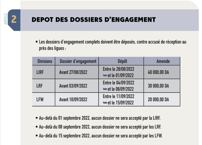 DOSSIER D’ENGAGEMENT SAISON 2022/2023